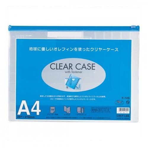 【商品名:クリヤーケース F-74S A4S 藍 25冊】ファスナーで密封だから濡れない、汚れない。上部ファスナーでしっかり密封。ぶんるに便利な見出し付き。