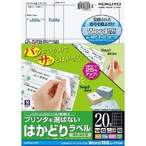 KOKUYO コクヨ プリンタを選ばない はかどりラベル(Word対応レイアウト) KPC-E120-20N