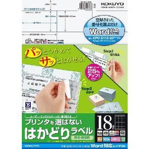 KOKUYO コクヨ プリンタを選ばない はかどりラベル(Word対応レイアウト) KPC-E118-100N