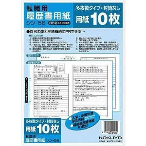KOKUYO コクヨ 履歴書用紙(多枚数) シン-56