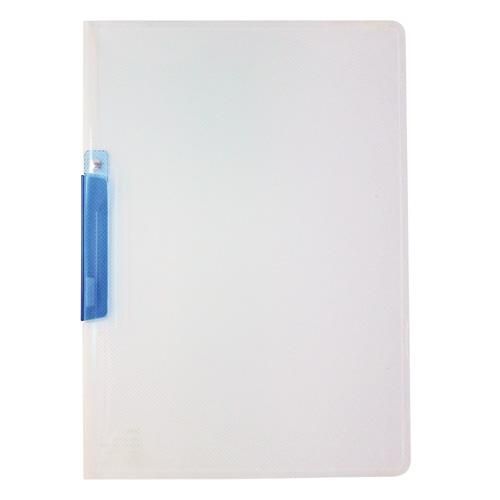 簡単操作の、おしゃれな透明カラークリップを採用。企画書やレポートの提出、プレゼンテーション用に便利な、透明表紙のクリップインファイル。パンチ穴をあけずに資料を綴じられ、差替も簡単。クリップは、ダブルプレス方式を採用しているので、少量の書類もしっかり綴じられます。●押さえてとじるファイル●プレゼンテーション用ファイル●タテ型●入数:20冊入●規格:A4−S●収容数:20枚●背幅:7mm●色:ブルー●材質:表紙=ポリプロピレン(表裏透明)0.5mm●外形寸法:縦316×横227mm