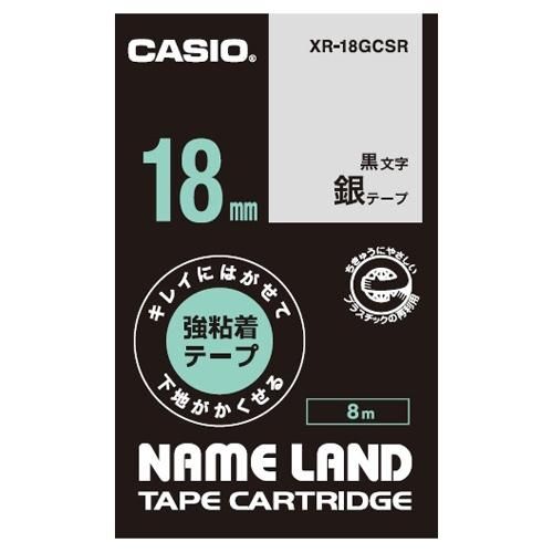 《カシオ計算機》 ラベルテープXR-18GCSR 黒文字銀テープ18mm